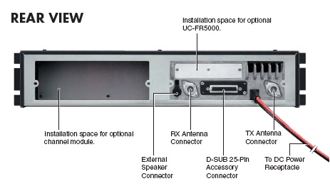 标配D-SUB25 接口支持连接中继台控制器或其它外接设备。具有依据接收模拟或数字信号分别在不同ACC不同针脚上分别输出相应控制信号控制目标设备。