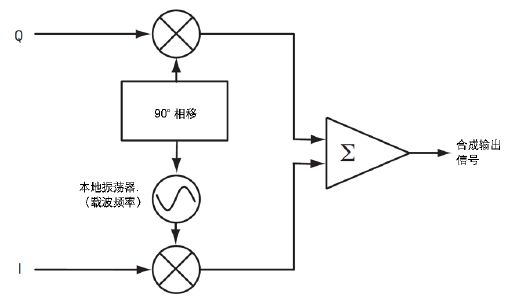 在用作调制器时,输入的数据流分离为独立的I和Q信号,在混频器1#和2#中向上变频。因为两个混频器的本振信号相位相差90°,所以混频器1#和2#的输出是正交的,两个正交信号在0°合成器中矢量合成,形成输出。