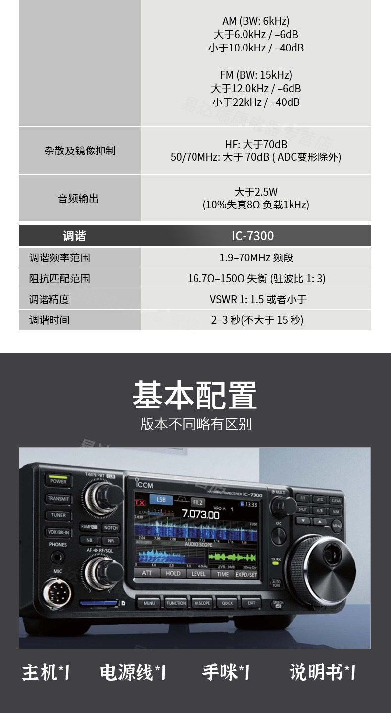 • 100瓦功率,短波,50/70MHz都可用 大屏幕触摸操作屏 内置天调,短波电台