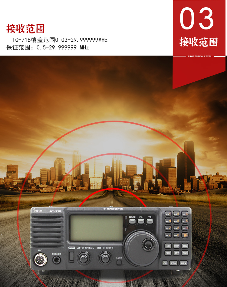 3 接收范围  IC-718覆盖范围0.03-29.999999MHz  保证范围0.5-29.999999MHz