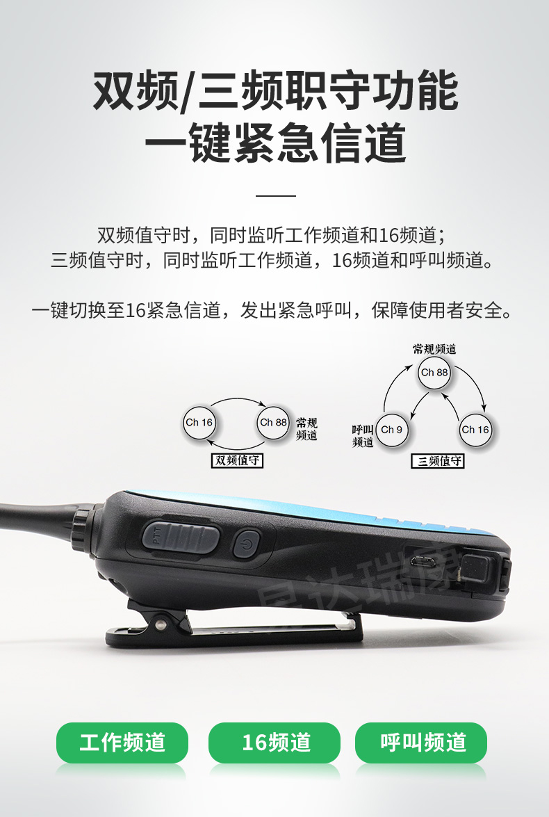 • VHF甚高频船用航海对讲机 内置国际美国加拿大海事频率 16信道应急键