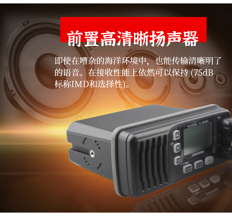 即使在嘈杂的海洋环境中,也能传输清晰明了的语音。在接收性能上依然可以保持(75db标称IMD和选择性)