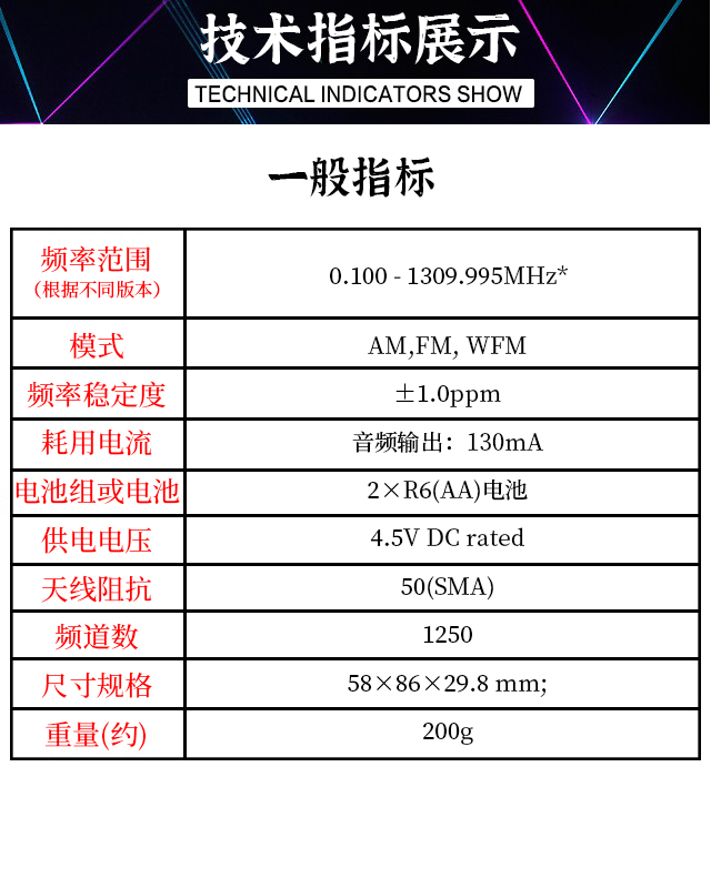 监听,监测 高速扫描 接收信号应用范围广 扫描可达到每秒100次高速扫描 200个存储信道 宽频率接收范围 可连续15小时接收,小巧重量仅200g