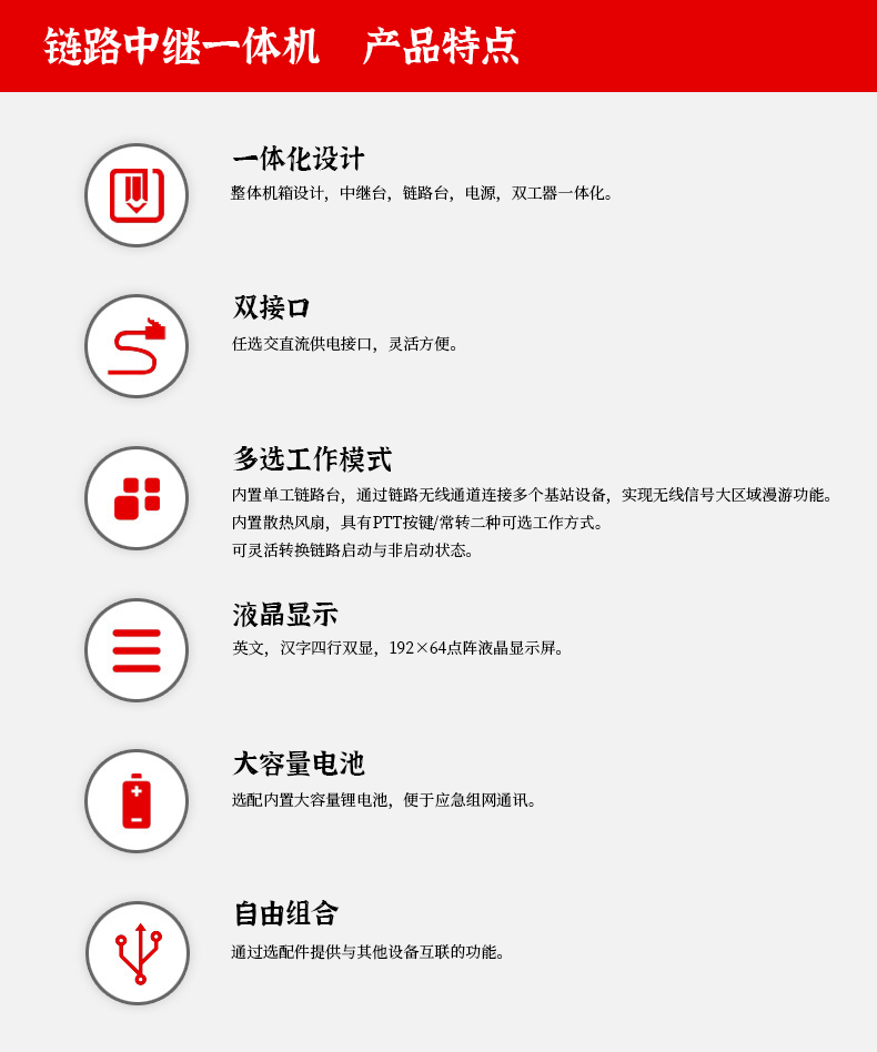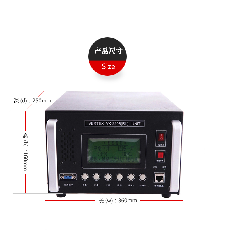 • 中继和链路机一体化集成模拟电台,220VAC供电,携带,安装架设方便