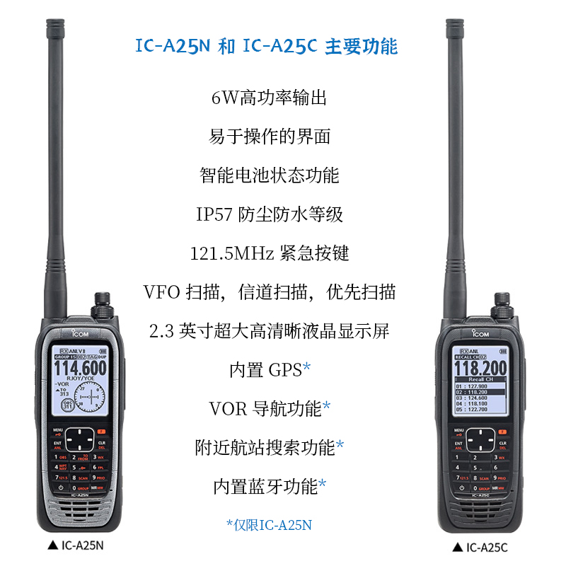 ICOM 艾可慕IC-A25航空对讲机内置GPS