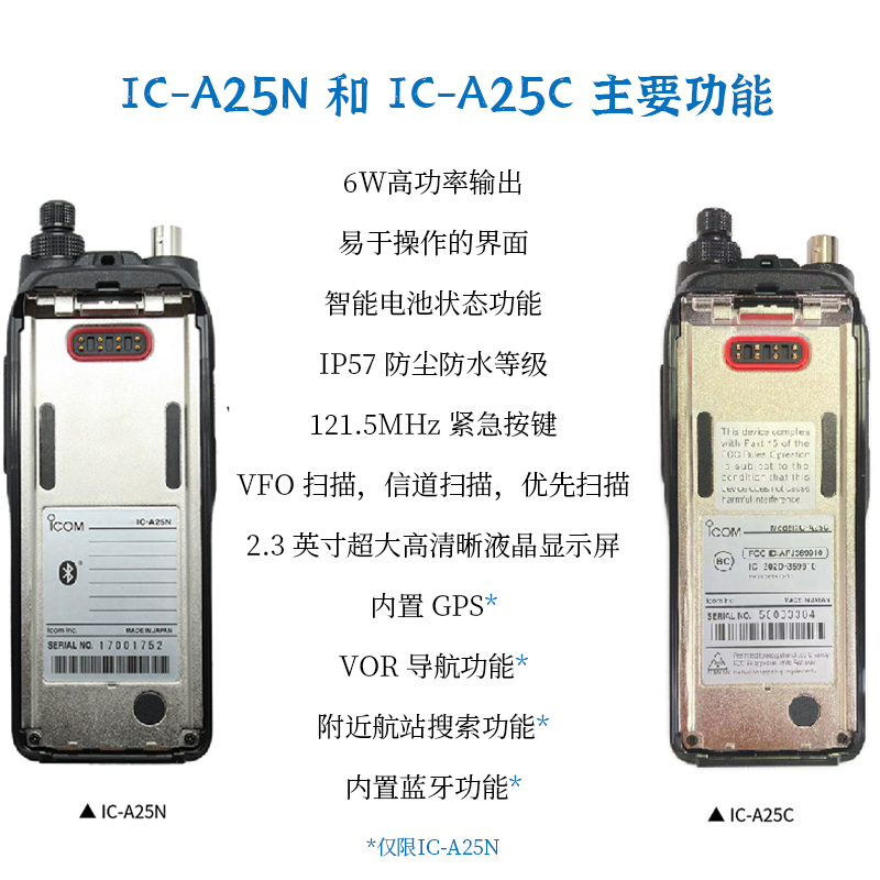 ICOM艾可慕IC-A25N/A25C航空用对讲机