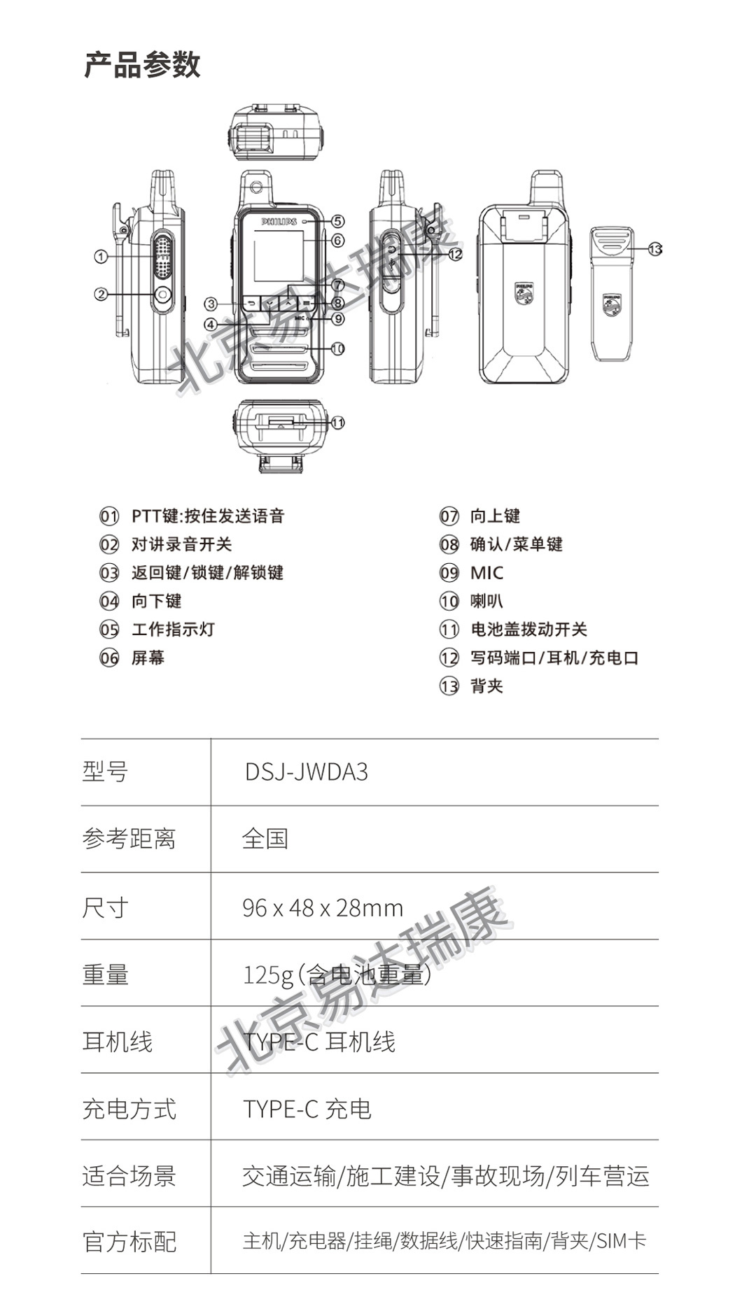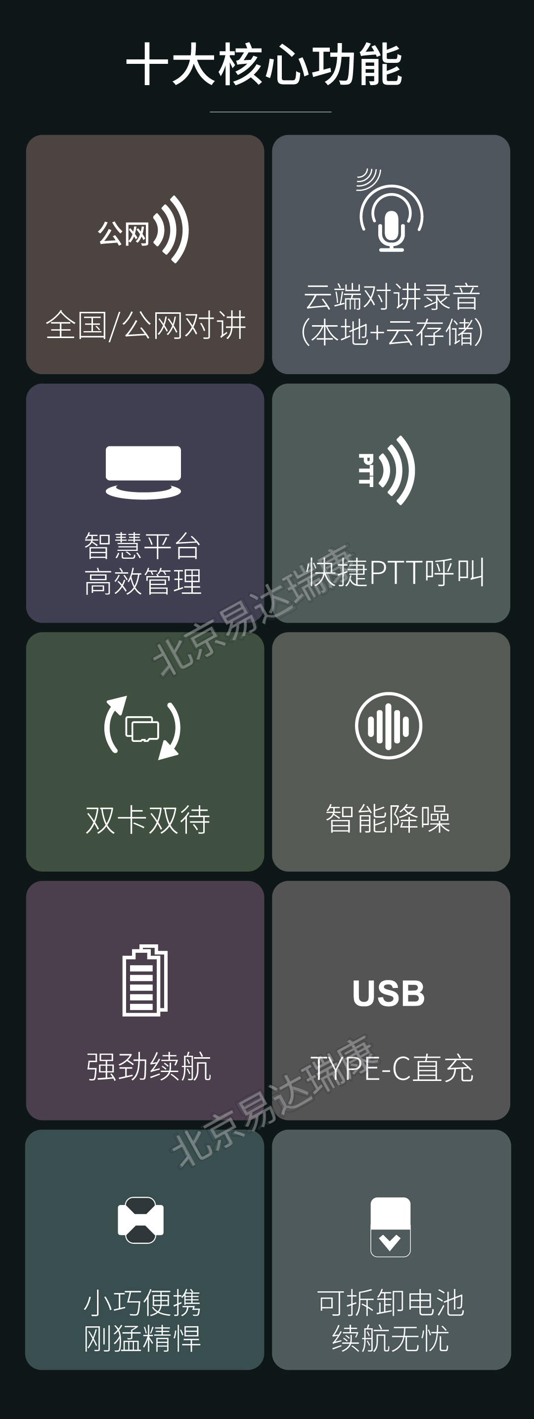 双卡双待/全国/公网对讲/云端录音/智慧平台高效管理/快捷PTT呼叫/强劲续航/TYPE-C直充/可拆卸电池/