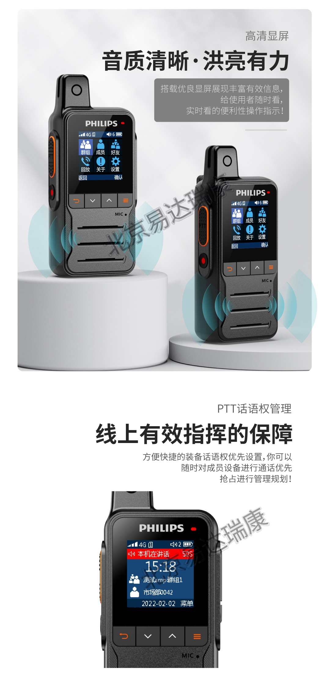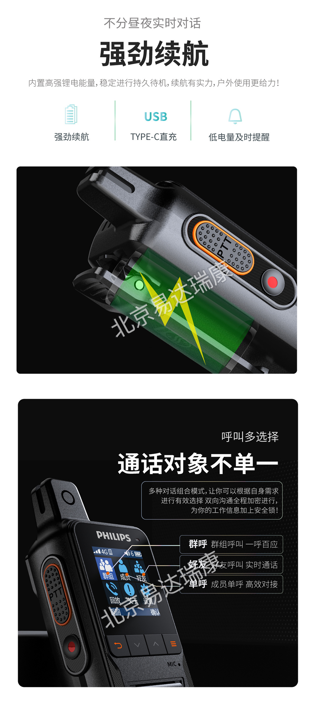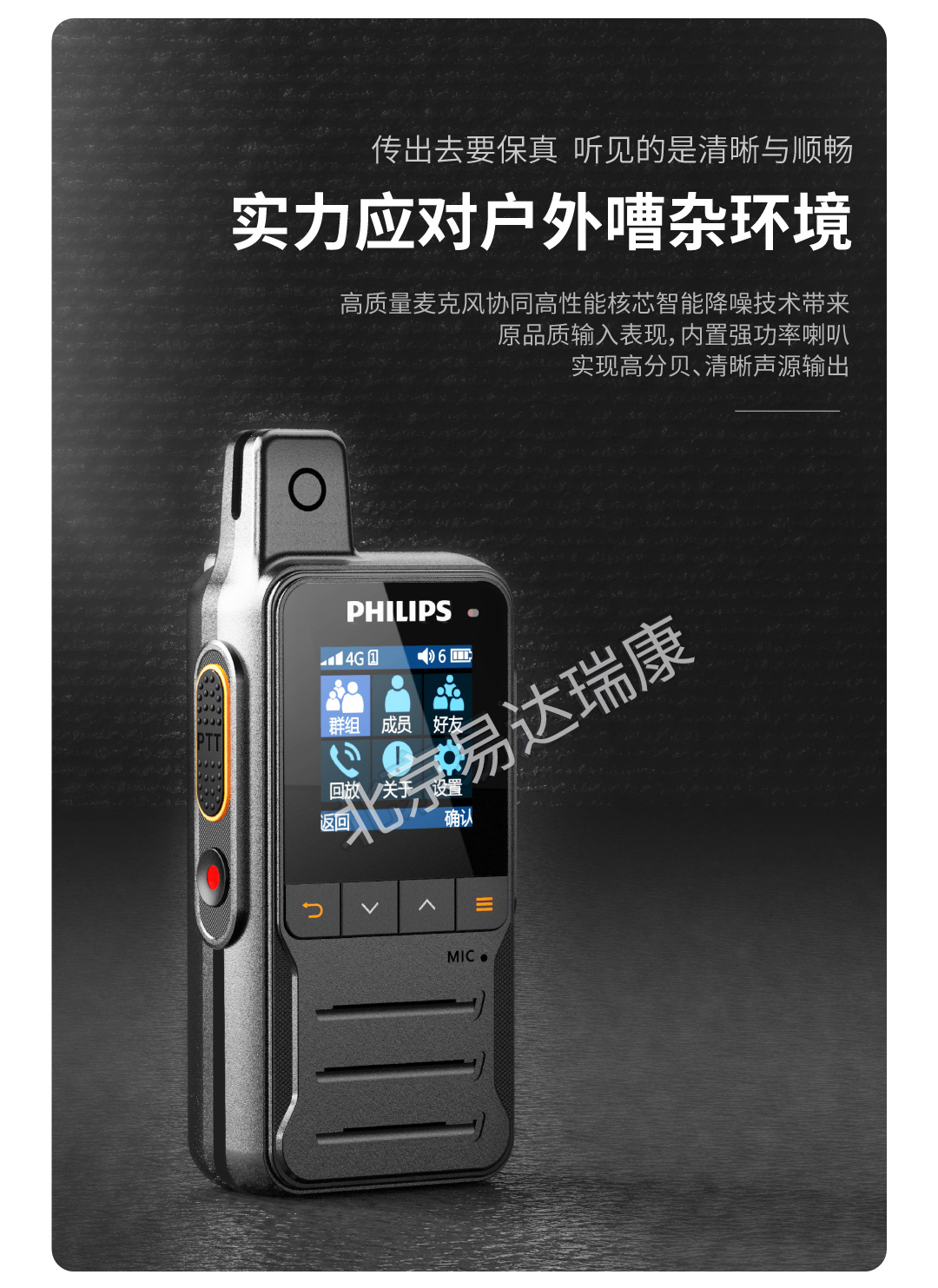 飞利浦公网智慧语音终端: 双卡双待/全国/公网对讲/云端录音/智慧平台高效管理/快捷PTT呼叫/强劲续航/TYPE-C直充/可拆卸电池/ 续航无忧/智能降噪/对讲