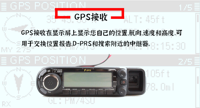 • 144MHz/430MHz双段 可接收航空段频率 内置GPS